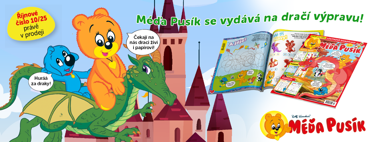 Říjnové číslo Médi Pusíka je tady! Méďa Pusík a jeho kamarádi se v říjnu vydají za draky a to nejen za těmi papírovými, kteří patří k podzimu, ale hlavně za těmi ze světa pohádek a fantazie! Zažijí společně mnoho zábavných…
